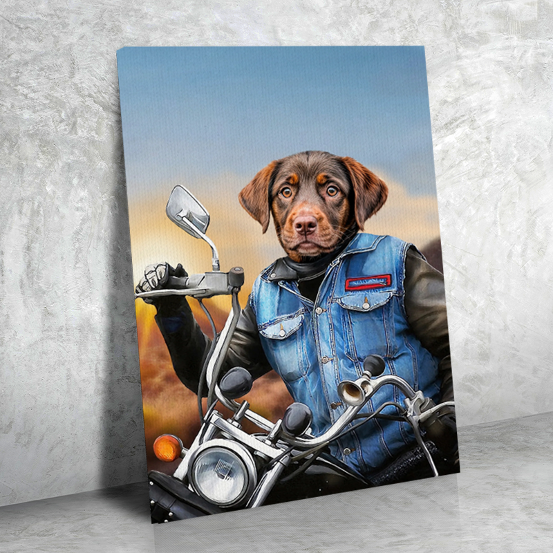 Biker Dog Custom Pet Portrait – Personalized Pet Art Canvas