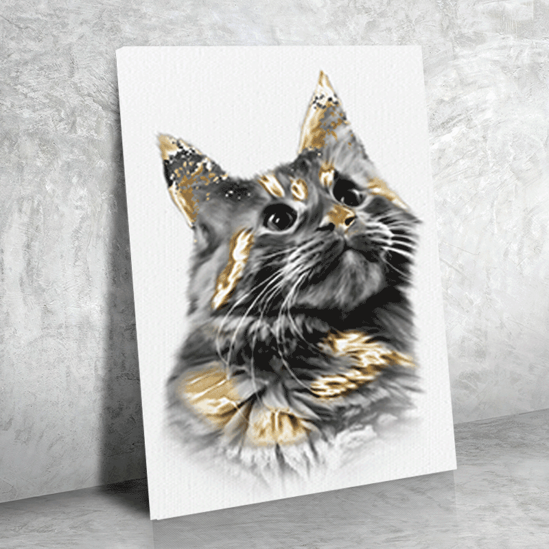 Gold Plated Pet Art - Custom Pet Portrait - Canvas / Medium (12 x 18 in)