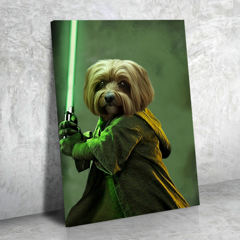 Jedi Star Wars With Green-LightSaber - Custom Pet Portrait - Canvas / Medium (12 x 18 in)