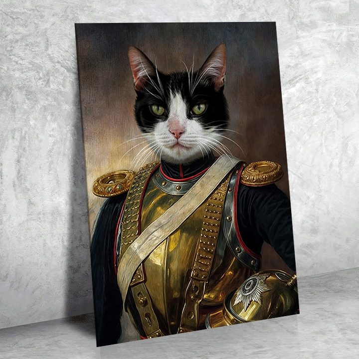 My pet has never looked more powerful! The golden armor and the bold expression make this portrait a true work of art.