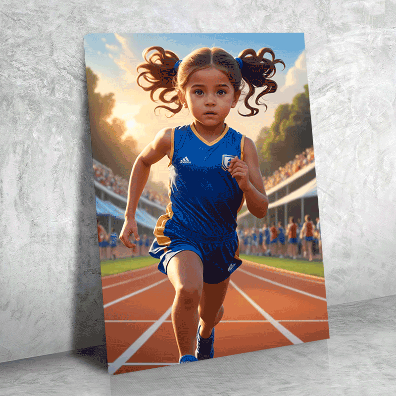 Track Runner Girl - Canvas / Medium (12 x 18 in)