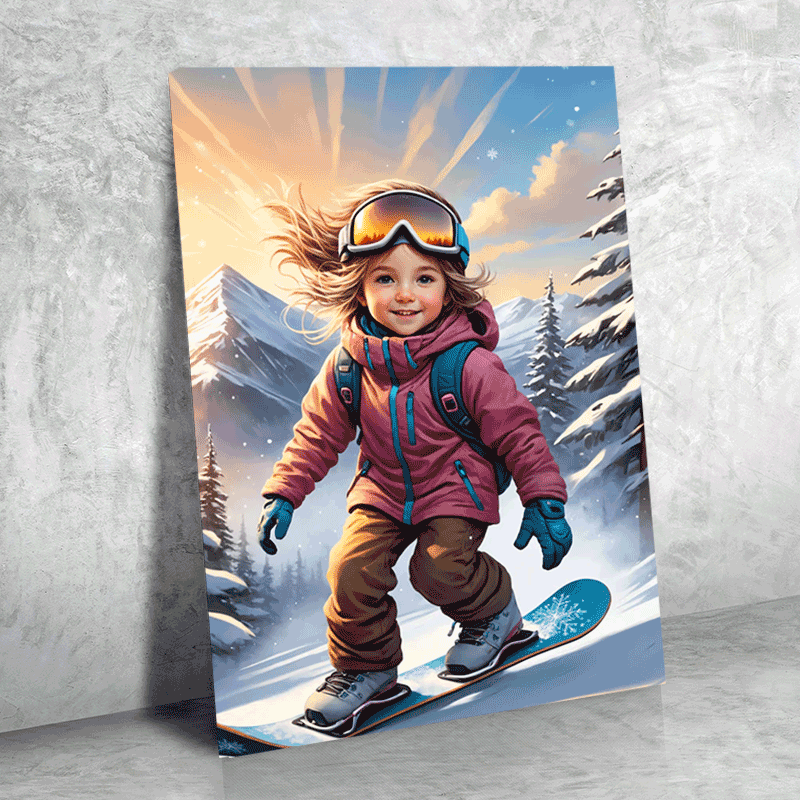 Mountain Snowboarder Girl - Canvas / Medium (12 x 18 in)