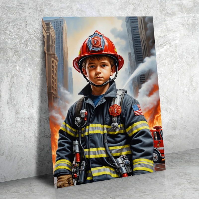 Fire Extinguisher Boy - Canvas / Medium (12 x 18 in)