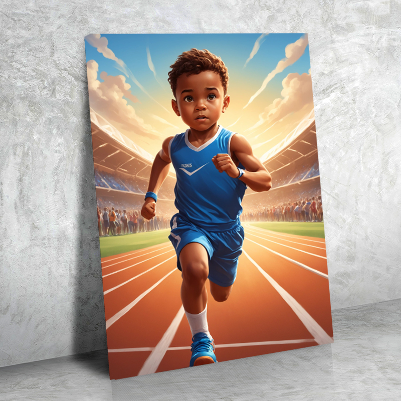 Track Runner Boy - Canvas / Medium (12 x 18 in)
