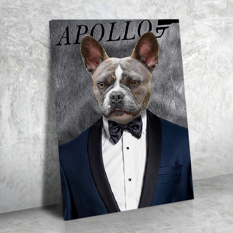 Custom Pet Portrait in James Bond Tuxedo – Personalized 007-Themed Pet Art - Canvas / Medium (12 x 18 in)