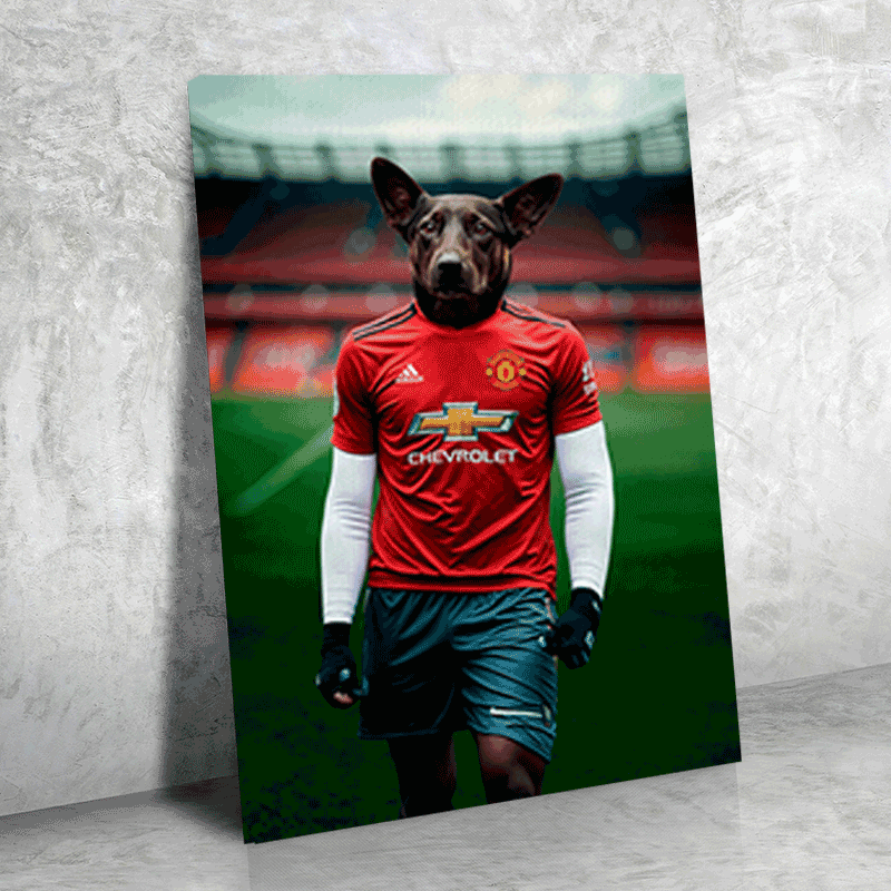 Custom Pet Portrait in Manchester United Jersey – Personalized Football-Themed Pet Art - Canvas / Medium (12 x 18 in)