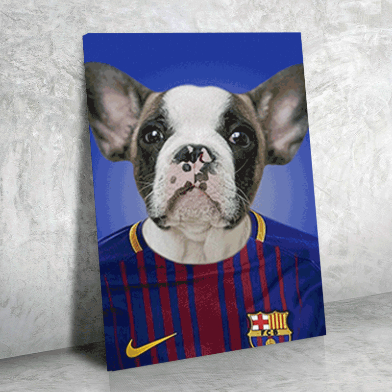 FC Barcelona Superstar Bulldog Custom Pet Portrait | Personalized Pet Art - Canvas / Medium (12 x 18 in)